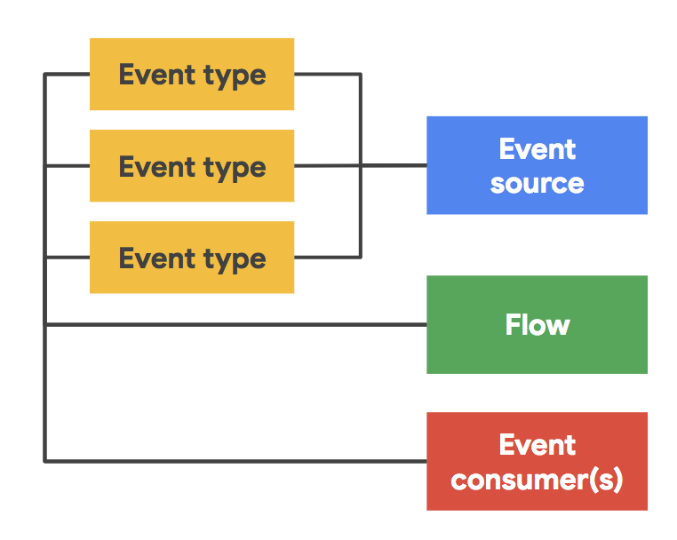 • Event Types — describes the types of events supported by the different event sources (e.g. Webhook for the above mentioned GitHub source)